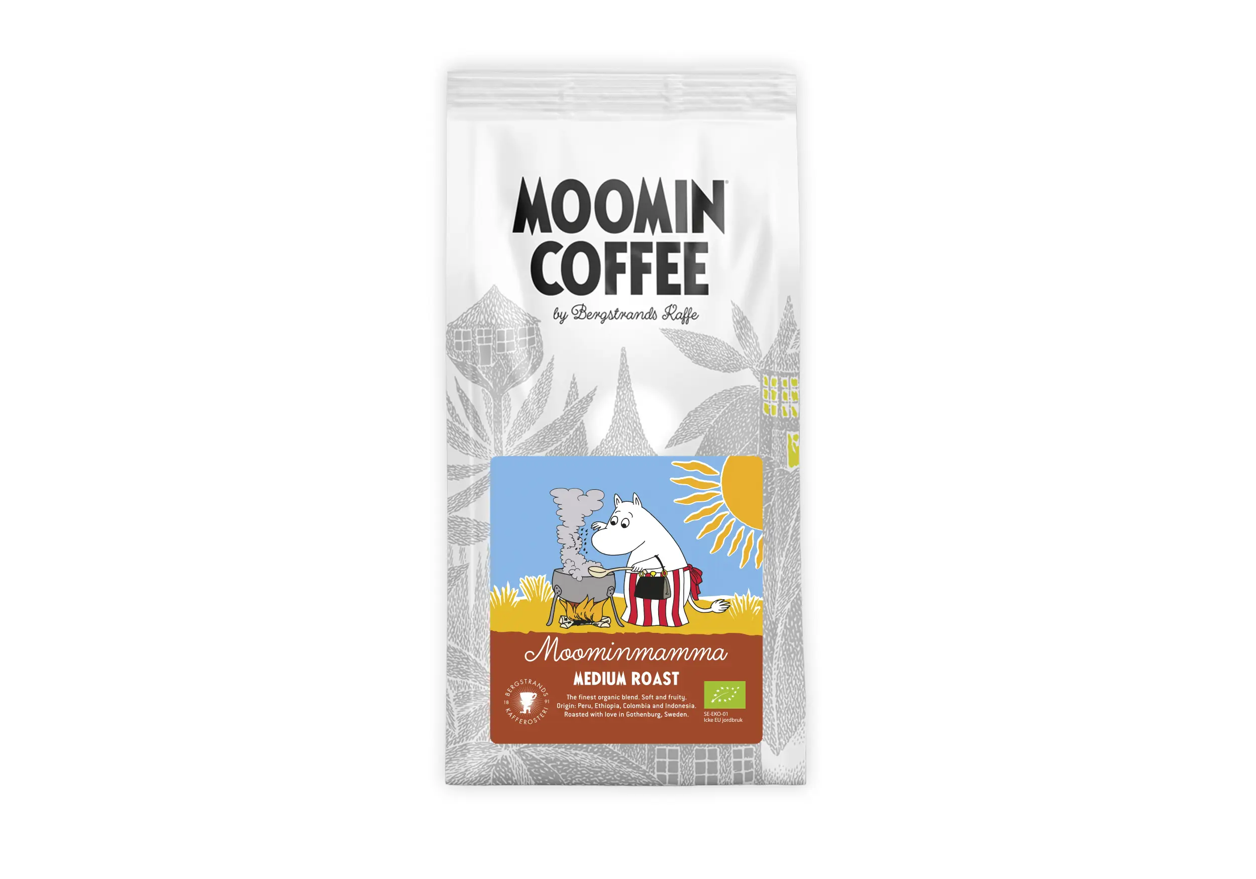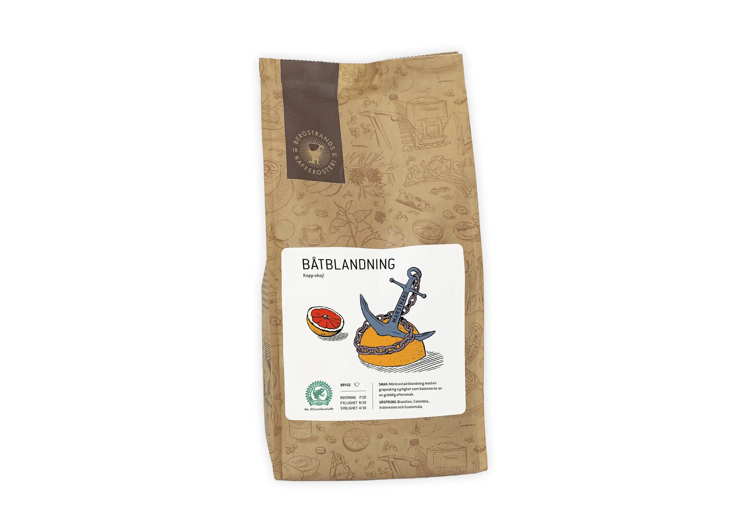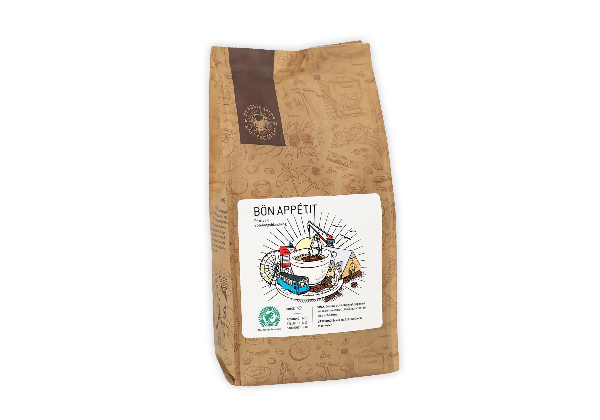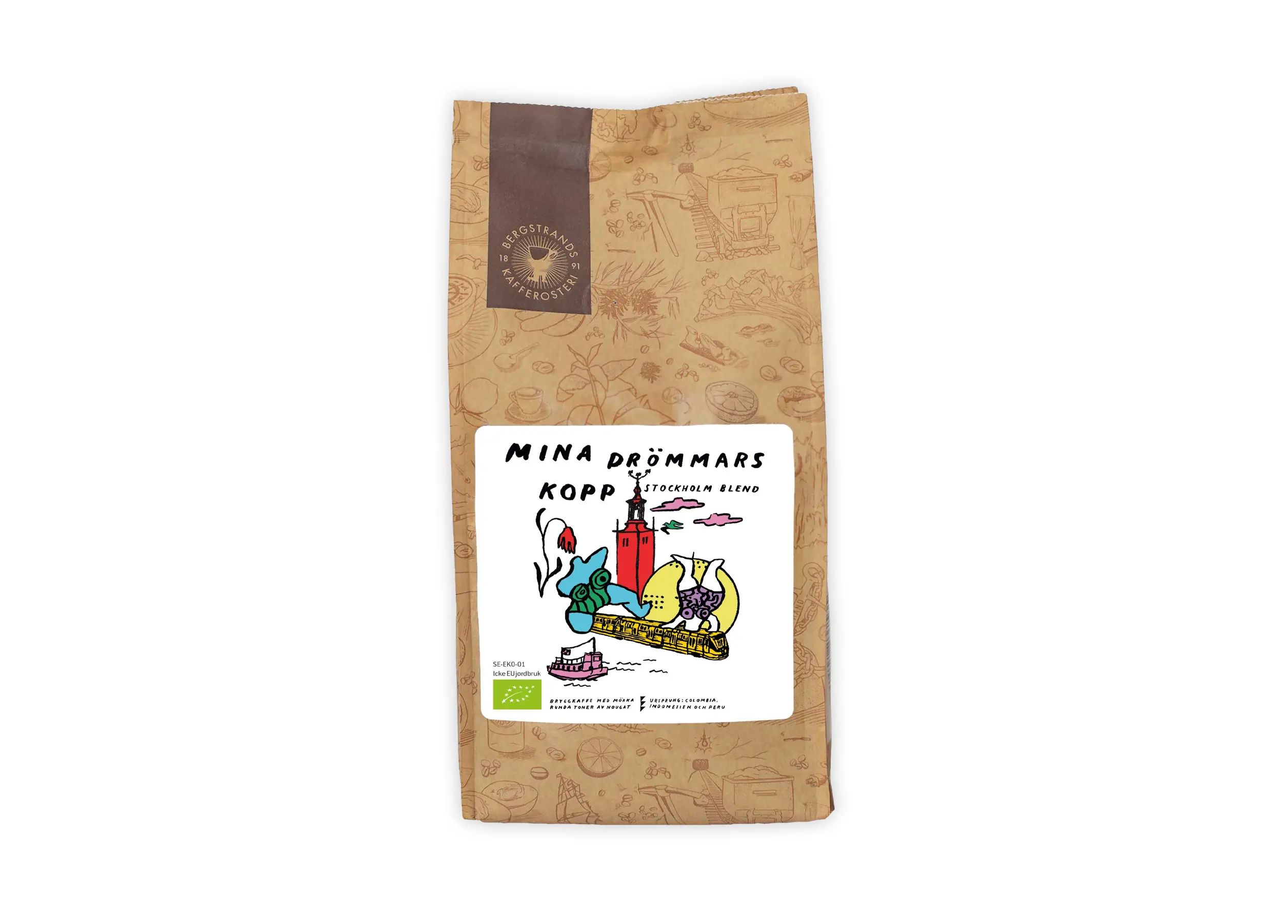 En mörkrostad blandning. rund och med toner av nougat. Bönorna, de kommer ifrån Colombia, Indonesien och Peru.